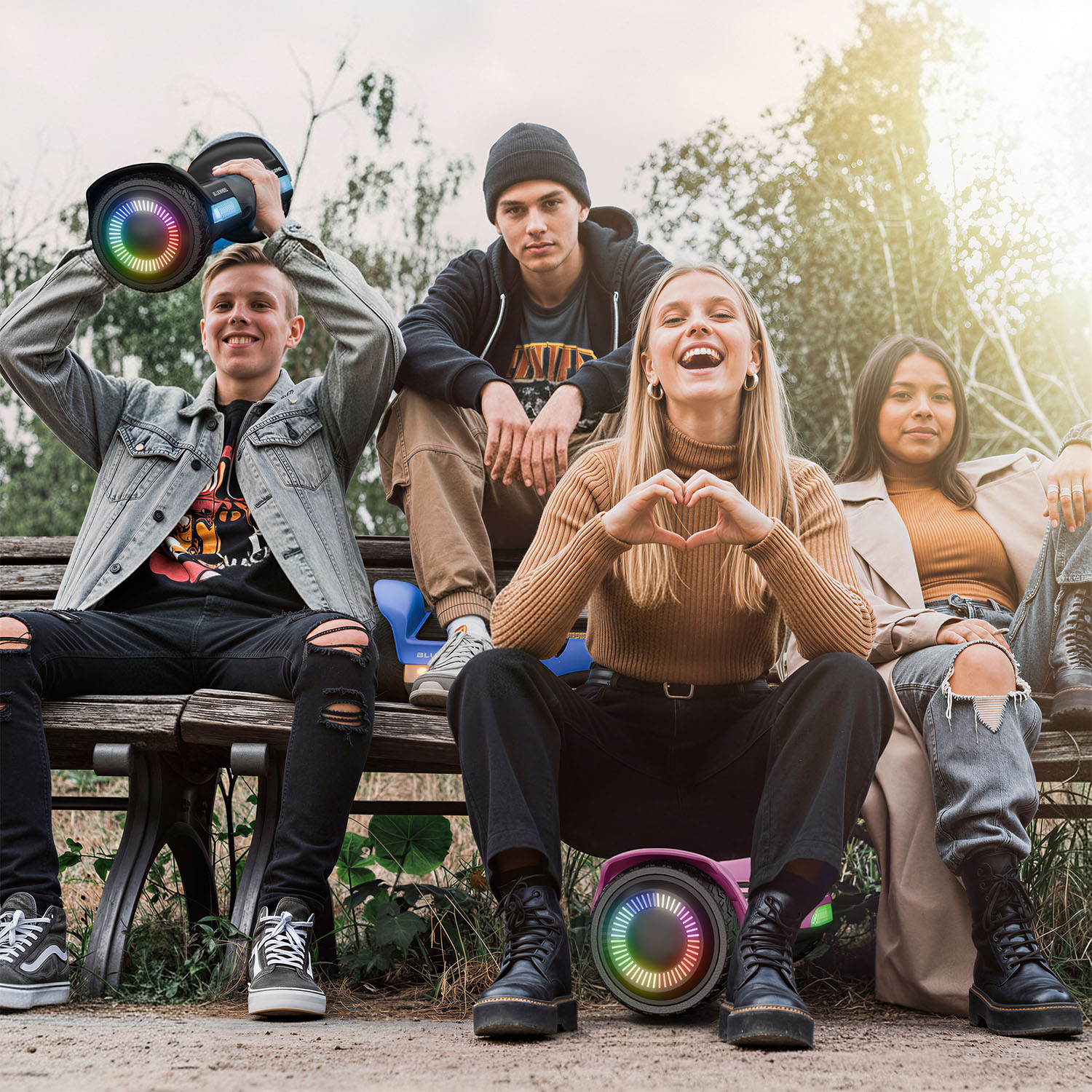 Ein Hoverboard ist ein elektrisch betriebenes, selbst balancierendes Fahrzeug mit zwei Rädern. Die Steuerung erfolgt durch Gewichtsverlagerung: Nach vorne lehnen zum Vorwärtsfahren, nach hinten lehnen zum Bremsen oder Anhalten. Durch Verlagerung des Körpergewichts nach links oder rechts wird die Richtung gesteuert. Das integrierte Selbstbalanciersystem unterstützt dabei, das Gleichgewicht zu halten.